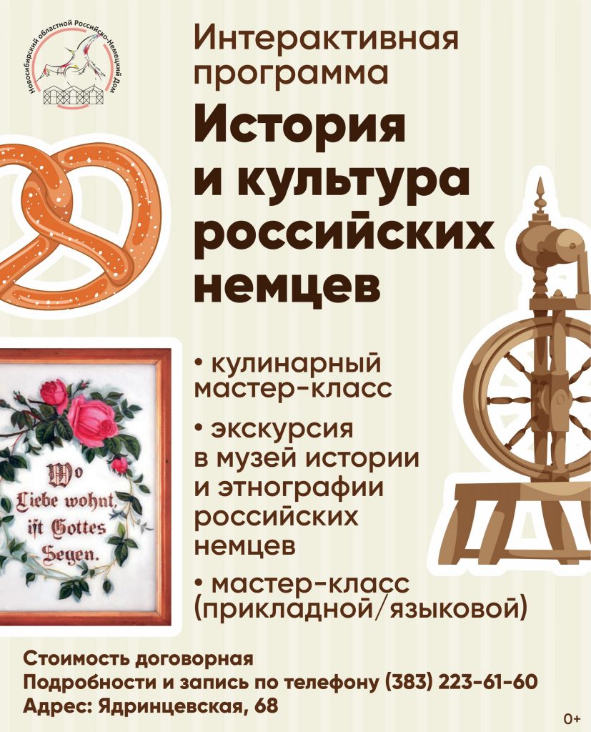 Новосибирский областной Российско-Немецкий Дом приглашает организованные группы на интерактивную программу «История и культура российских немцев» — живое путешествие в прошлое и настоящее.