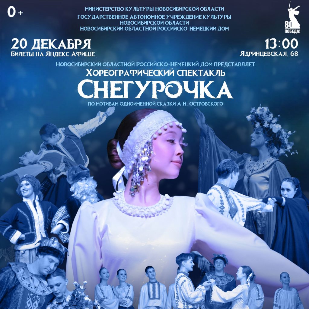 20 декабря в 13:00 сцена Новосибирского областного Российско-Немецкого Дома вновь откроет двери в мир зимней сказки – мы приглашаем на хореографический спектакль «Снегурочка».