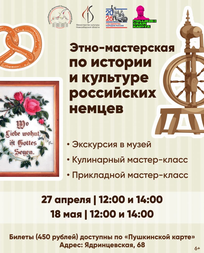Именно такой станет программа «Этно-мастерская по истории и культуре российских немцев» от Новосибирского областного Российско-Немецкого Дома. Это не просто встреча и не просто мастер-класс. Это время, когда история перестает быть страницей из книги и становится чем-то живым: вкусом домашней выпечки, узором на шпрухе, тишиной музейного зала, где старинные вещи умеют говорить не хуже людей.