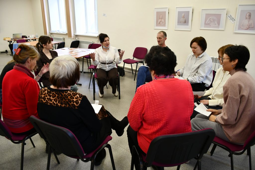 Основу программы составили практические языковые блоки под руководством языковых мультипликаторов Института этнокультурного образования – BiZ Инны Афанасьевой и Ольги Кононенко. Работа шла в двух группах, с последующей ротацией, чтобы каждый участник смог полноценно погрузиться в содержание обоих методических блоков. Такой формат оказался особенно продуктивным: в небольших группах было легче обсуждать конкретные случаи, задавать вопросы и разбирать те трудности, которые возникают в повседневной клубной практике.