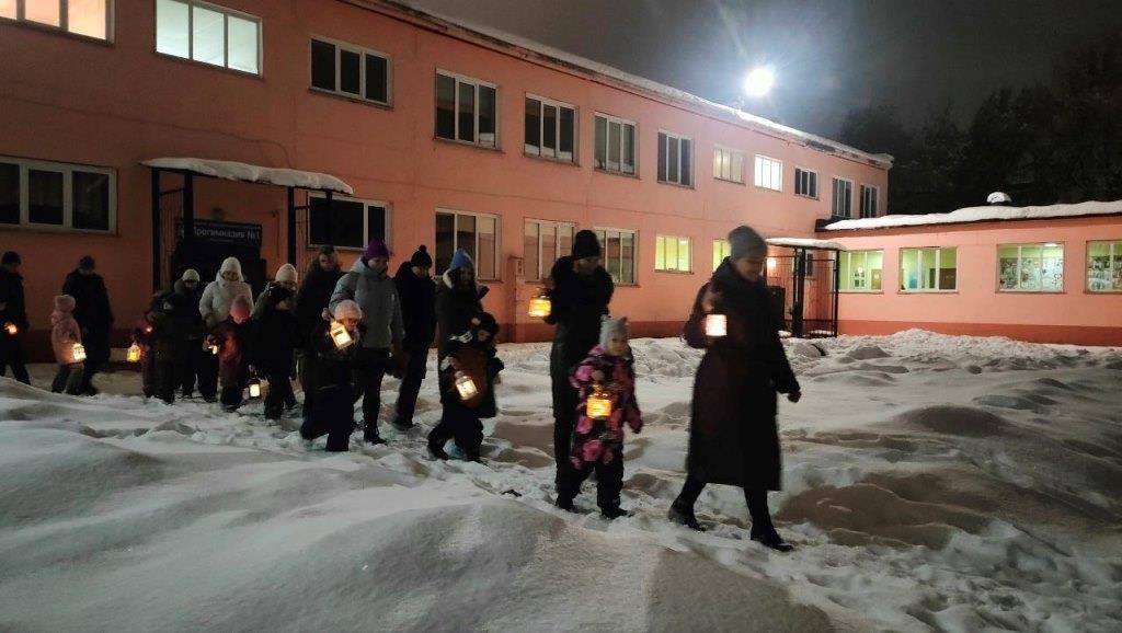 Вечернее шествие с фонариками стало трогательной точкой в празднике. Огни латерн освещали заснеженный двор, создавая атмосферу тепла и единства. В финале ребята получили традиционное угощение – сдобное печенье в форме гуся.
