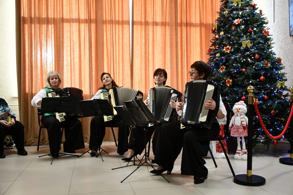 Ярмарка объединила разные форматы и аудитории: каждый желающий мог изготовить рождественский сувенир своими руками, угоститься выпечкой или сделать яркие снимки в фотозонах. Атмосферу дополняла живая музыка в исполнении квартета аккордеонисток НО РНД «Эдельвейс», которая создавала ощущение уюта и предпраздничного ожидания.
