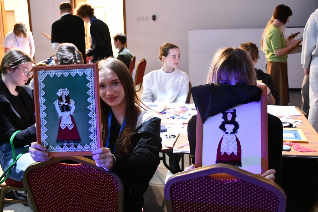 Однако «Немецкий активно» оказался шире, чем просто соревнование. С самого начала стало ясно, что речь идет о проекте, в котором немецкий язык существует в тесной связи с историей, культурой и традицией российских немцев. Уже в первый день после знакомства и организационных мероприятий участники погрузились в этнокультурную атмосферу проекта. Для них прошел прикладной мастер-класс по изготовлению панно с традиционными костюмами российских немцев. Через творческую работу школьники знакомились не только с визуальной стороной костюма, но и с немецкими названиями его элементов. Затем последовал этноблок «По следам российских немцев», который задал важный тон всей программе: язык здесь рассматривался не в отрыве от жизни и истории, а как часть большого культурного наследия.
